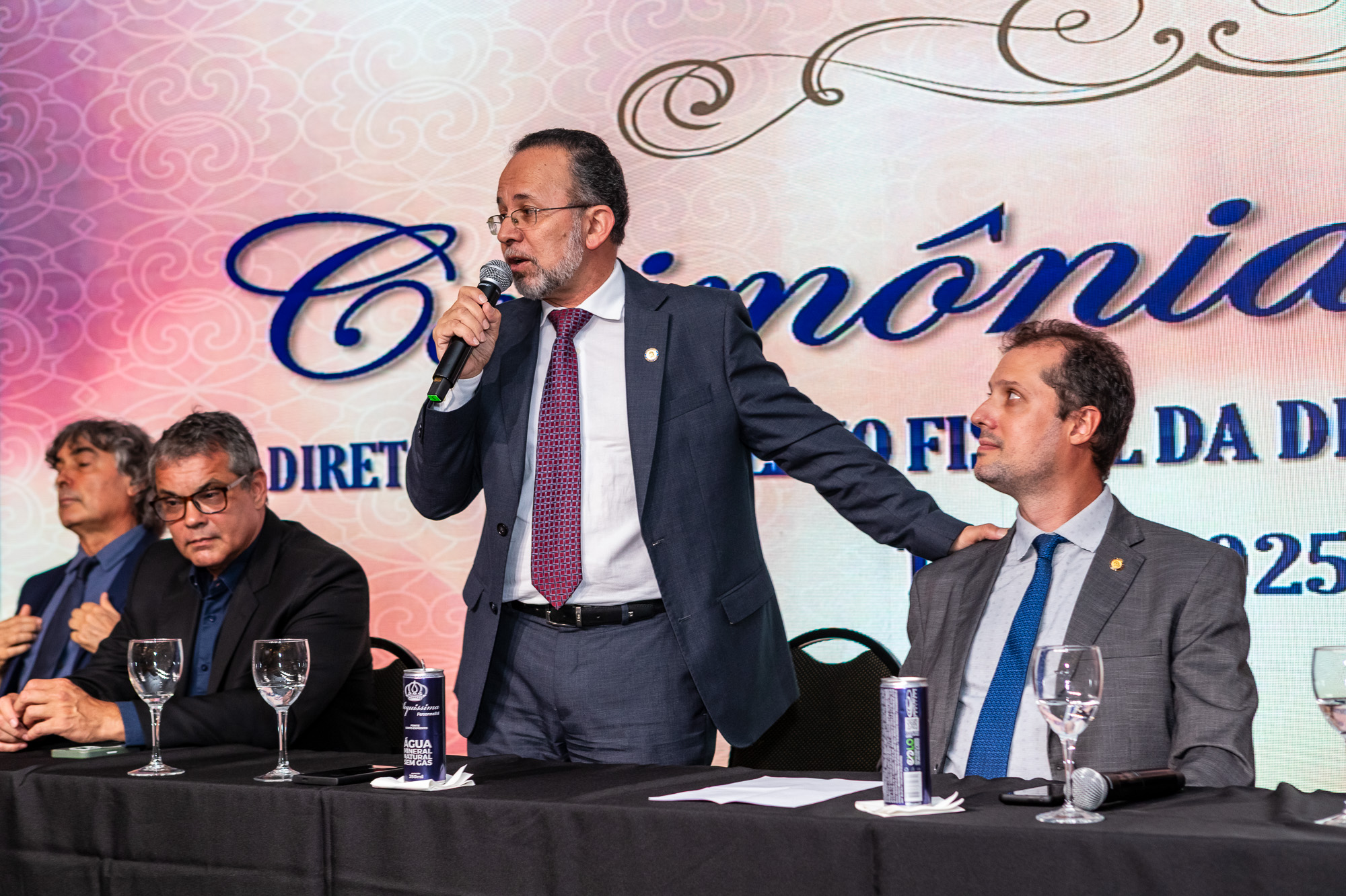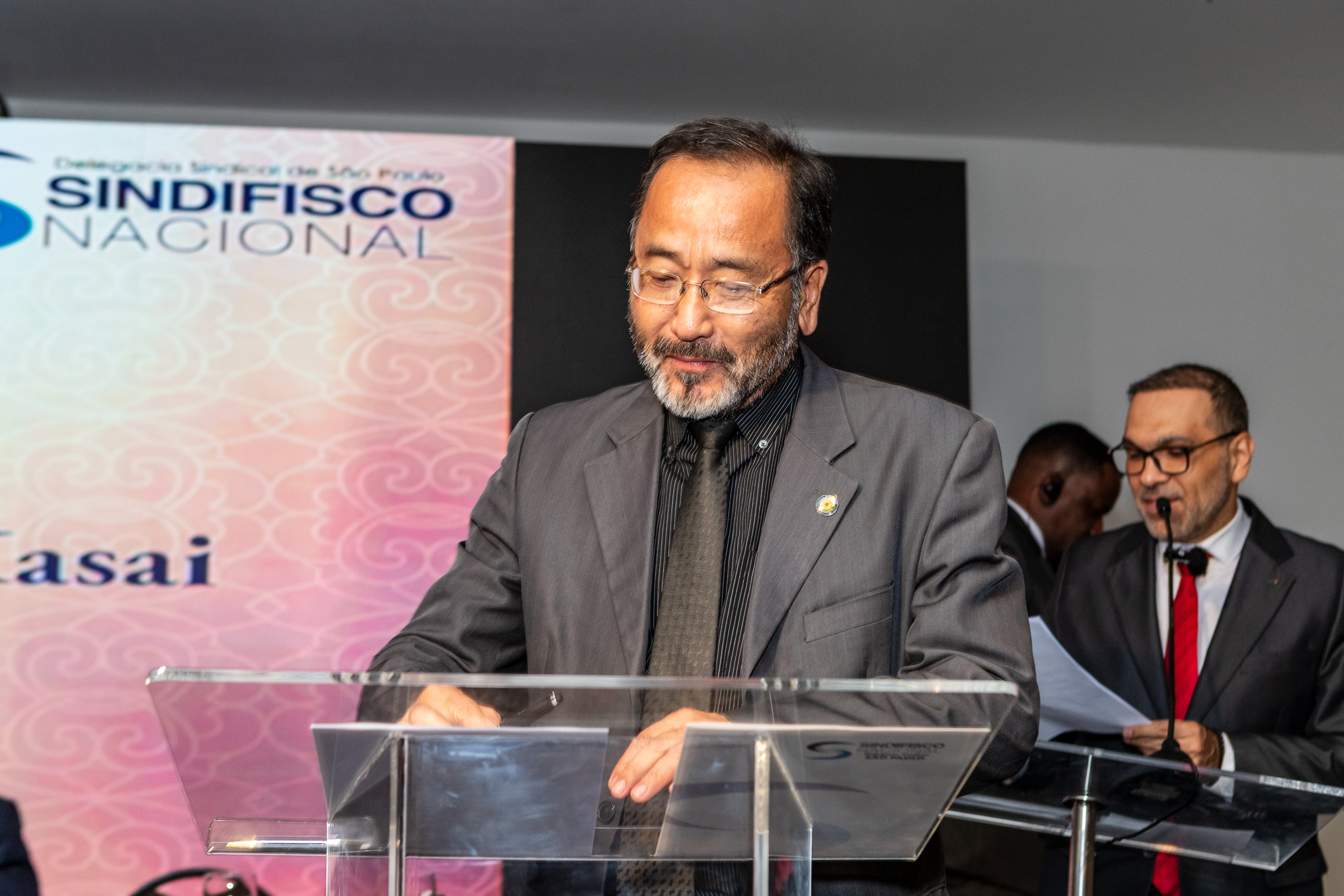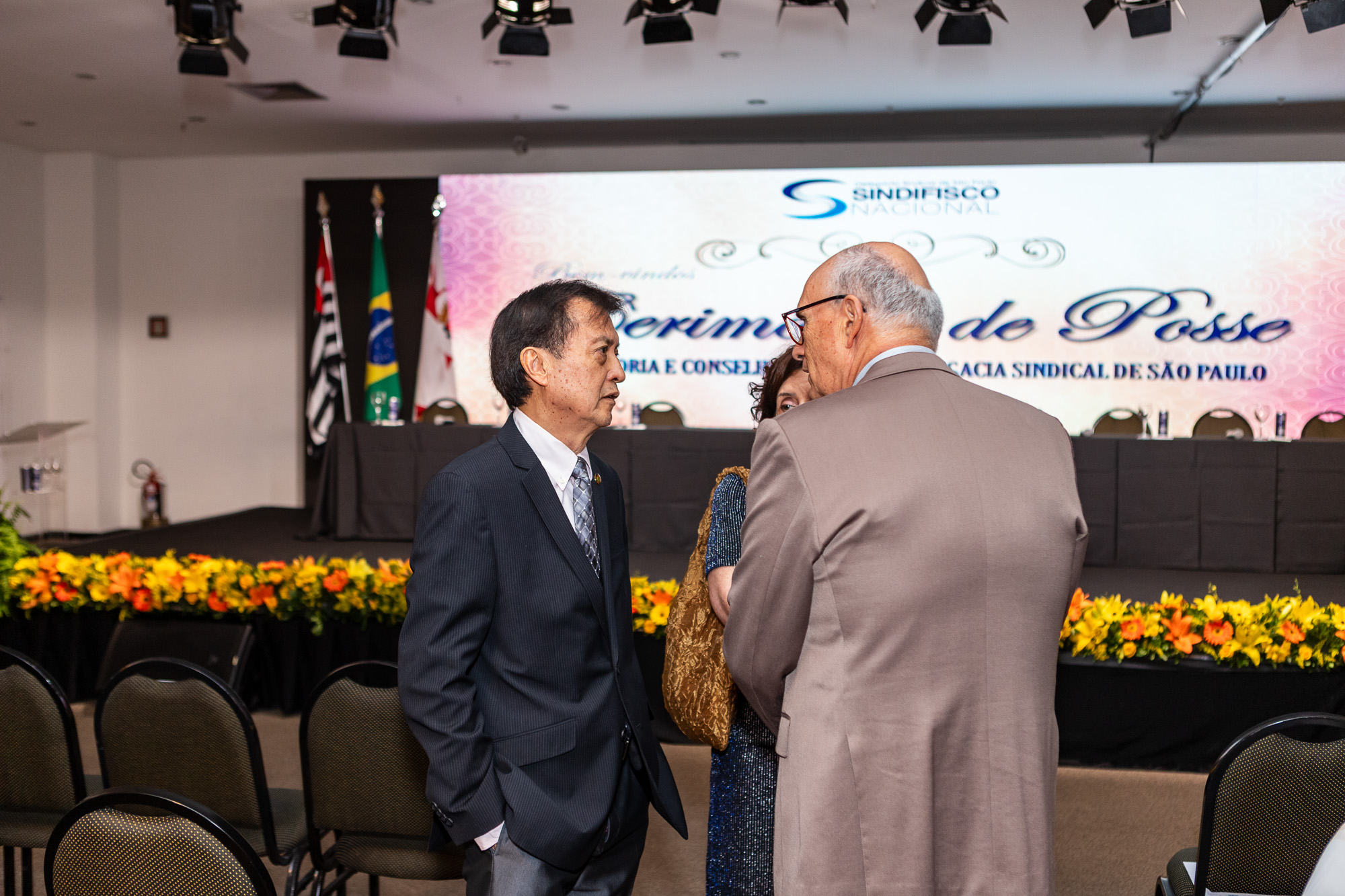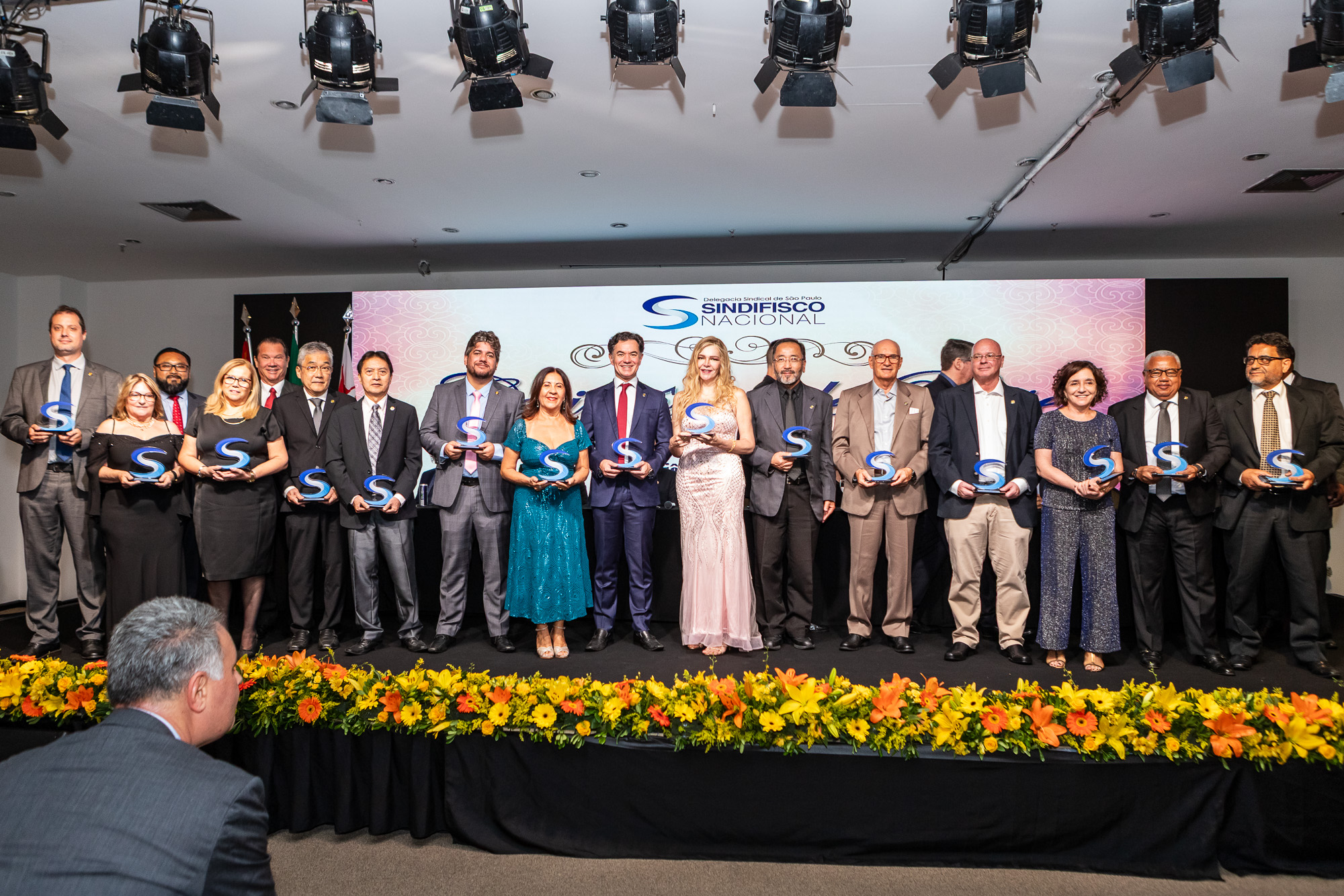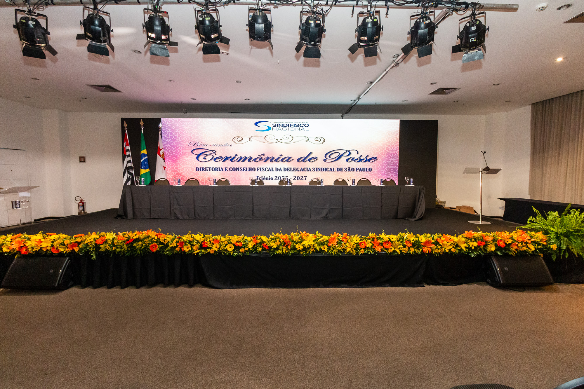 Para compor a mesa diretora, foram chamados ao palco o Presidente da DS/SP do Sindifisco Nacional, Auditor-Fiscal Gabriel Rissato Leite Ribeiro; o Presidente da Diretoria Executiva Nacional (DEN) do Sindifisco Nacional, Auditor-Fiscal Dão Real Pereira dos Santos; a Superintendente da 8ª Região Fiscal, Auditora-Fiscal Márcia Cecília Meng; e o Corregedor da Receita Federal, Auditor-Fiscal Guilherme Bibiani Neto.