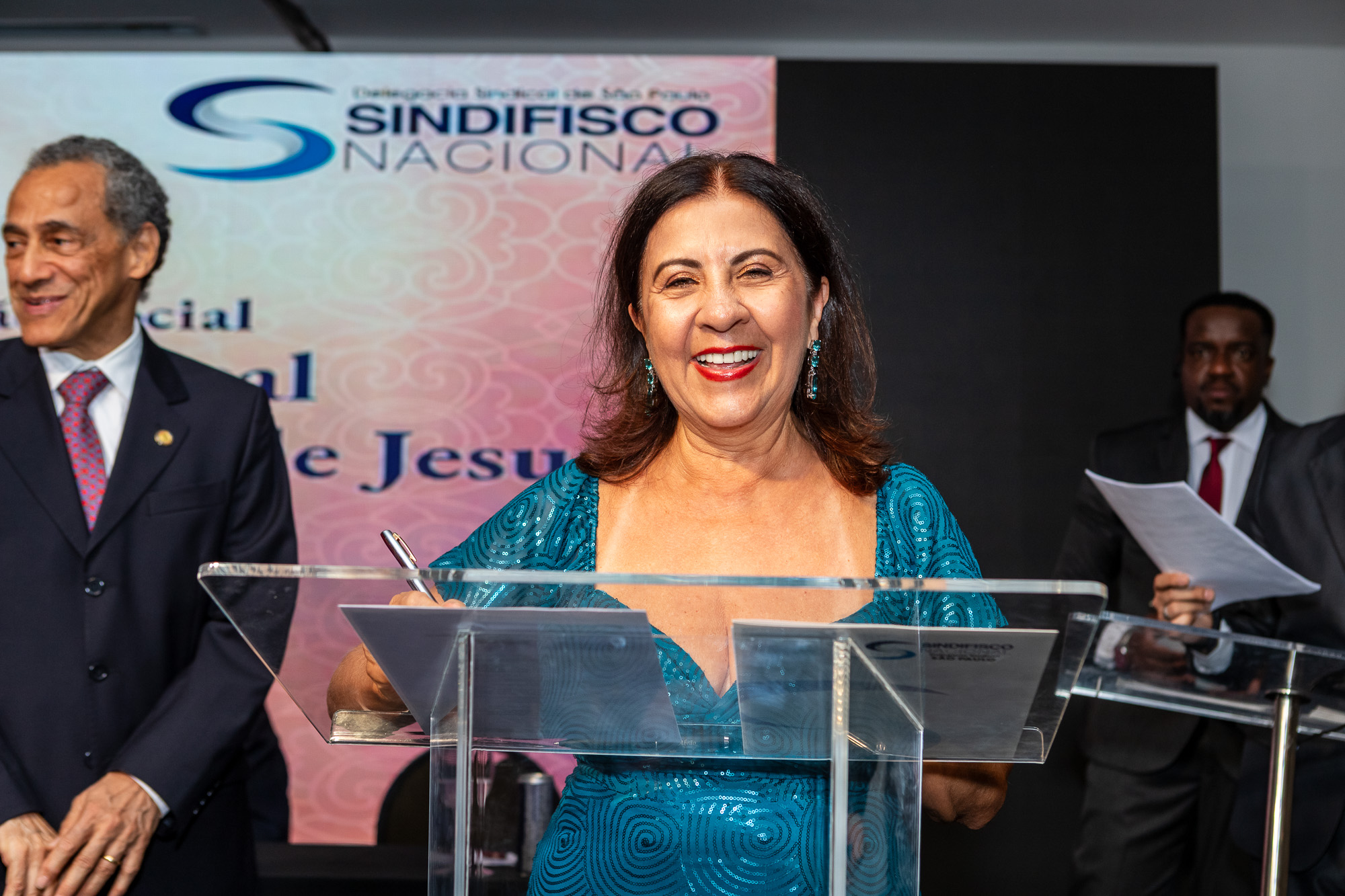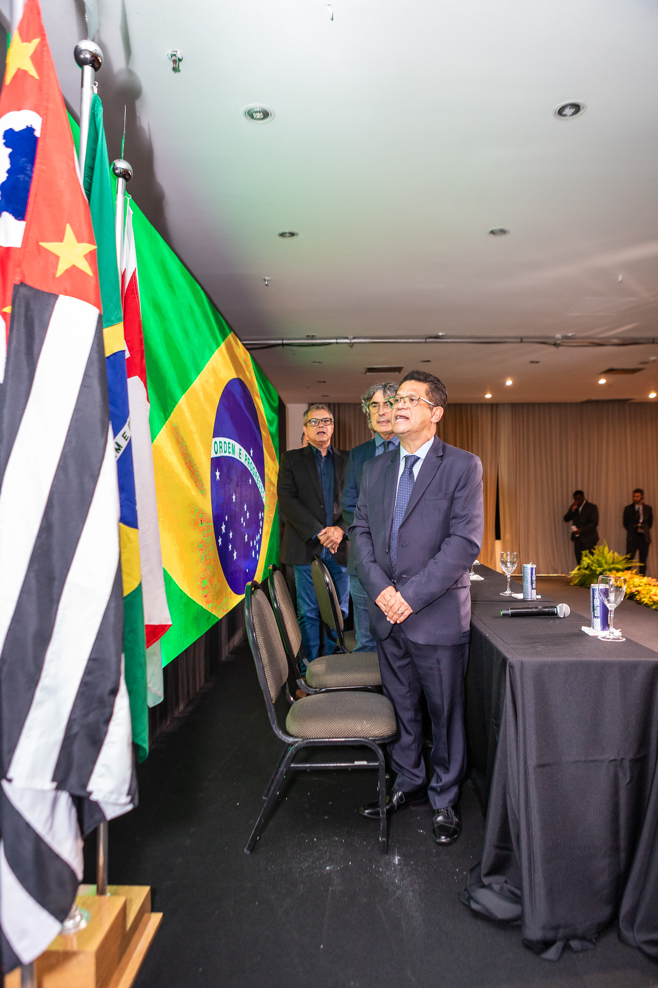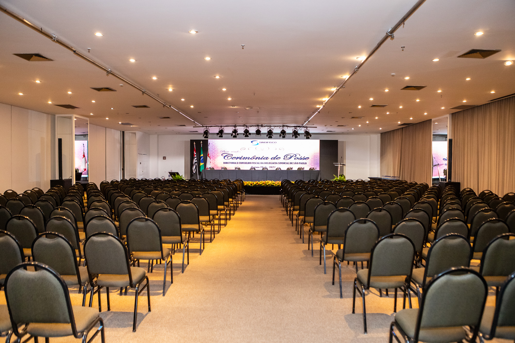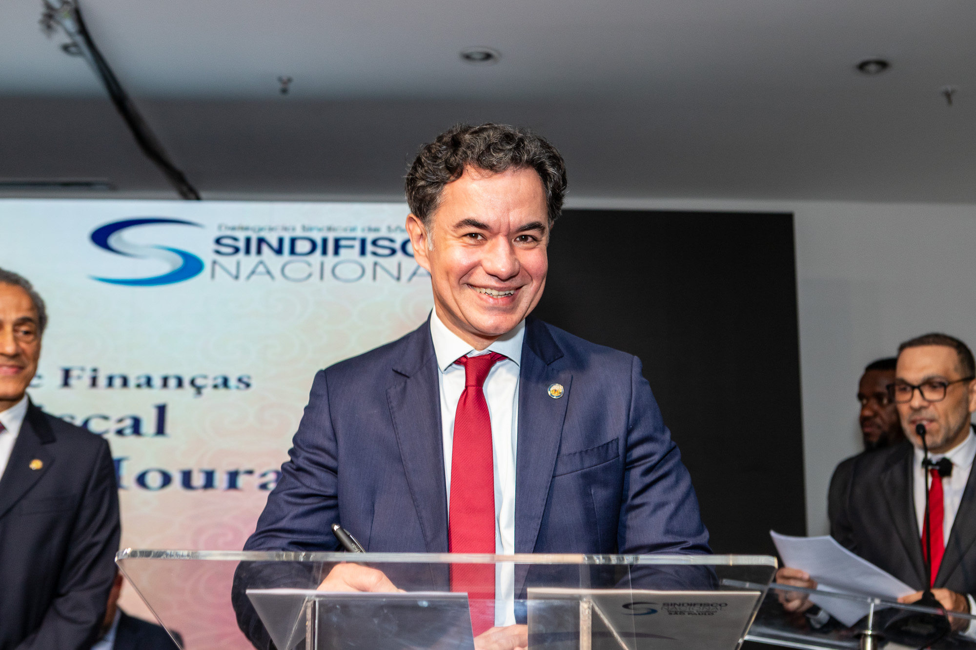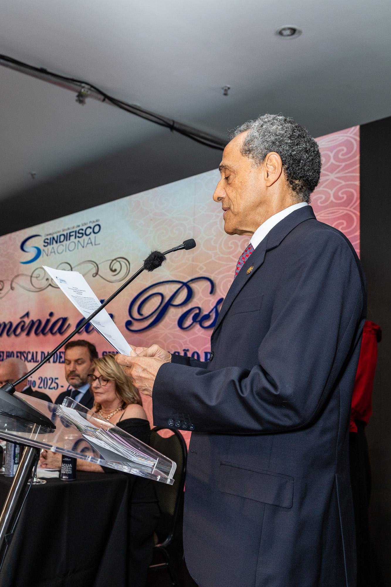 Para compor a mesa diretora, foram chamados ao palco o Presidente da DS/SP do Sindifisco Nacional, Auditor-Fiscal Gabriel Rissato Leite Ribeiro; o Presidente da Diretoria Executiva Nacional (DEN) do Sindifisco Nacional, Auditor-Fiscal Dão Real Pereira dos Santos; a Superintendente da 8ª Região Fiscal, Auditora-Fiscal Márcia Cecília Meng; e o Corregedor da Receita Federal, Auditor-Fiscal Guilherme Bibiani Neto.