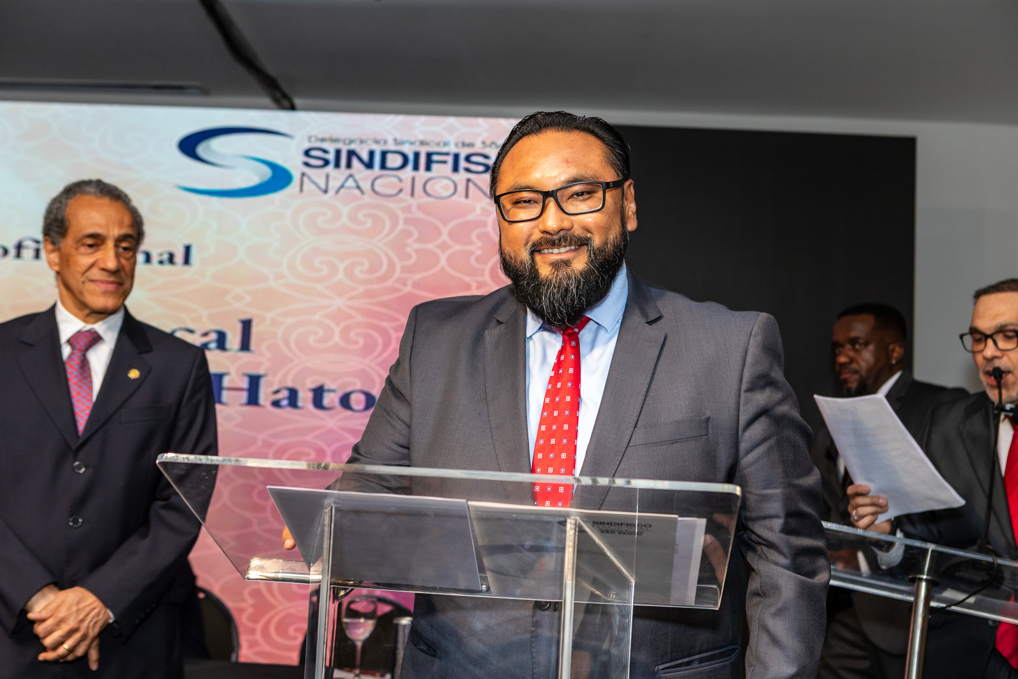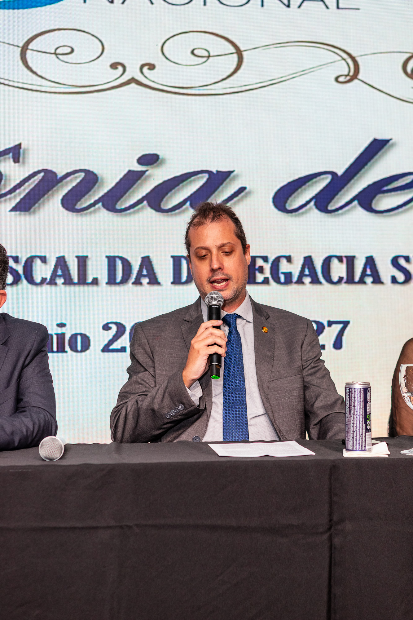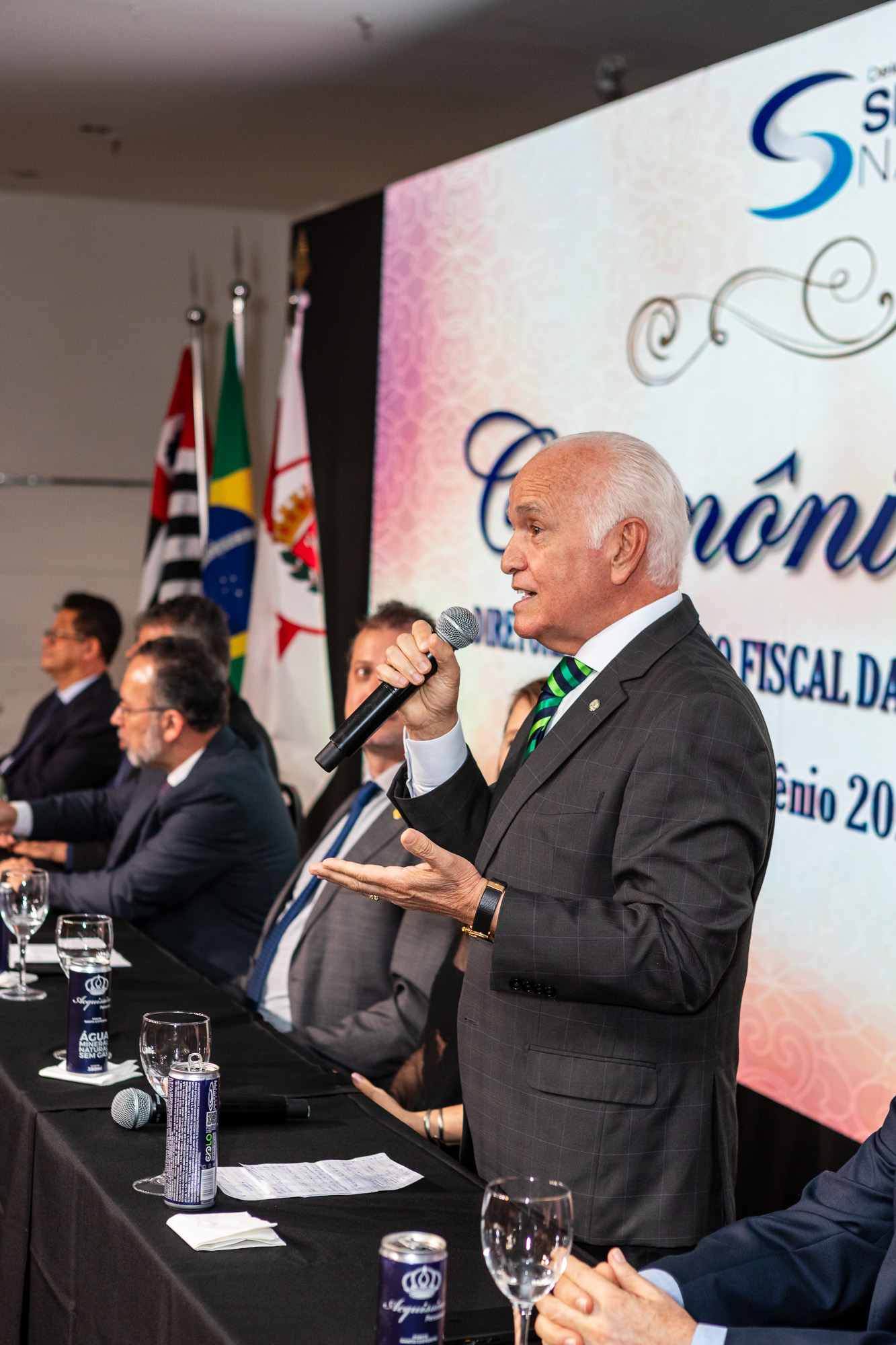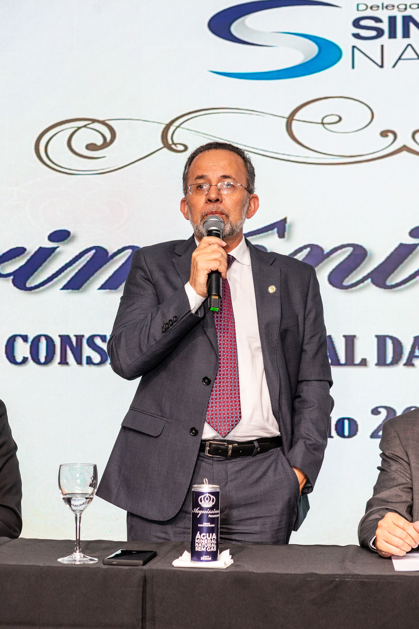 Para compor a mesa diretora, foram chamados ao palco o Presidente da DS/SP do Sindifisco Nacional, Auditor-Fiscal Gabriel Rissato Leite Ribeiro; o Presidente da Diretoria Executiva Nacional (DEN) do Sindifisco Nacional, Auditor-Fiscal Dão Real Pereira dos Santos; a Superintendente da 8ª Região Fiscal, Auditora-Fiscal Márcia Cecília Meng; e o Corregedor da Receita Federal, Auditor-Fiscal Guilherme Bibiani Neto.