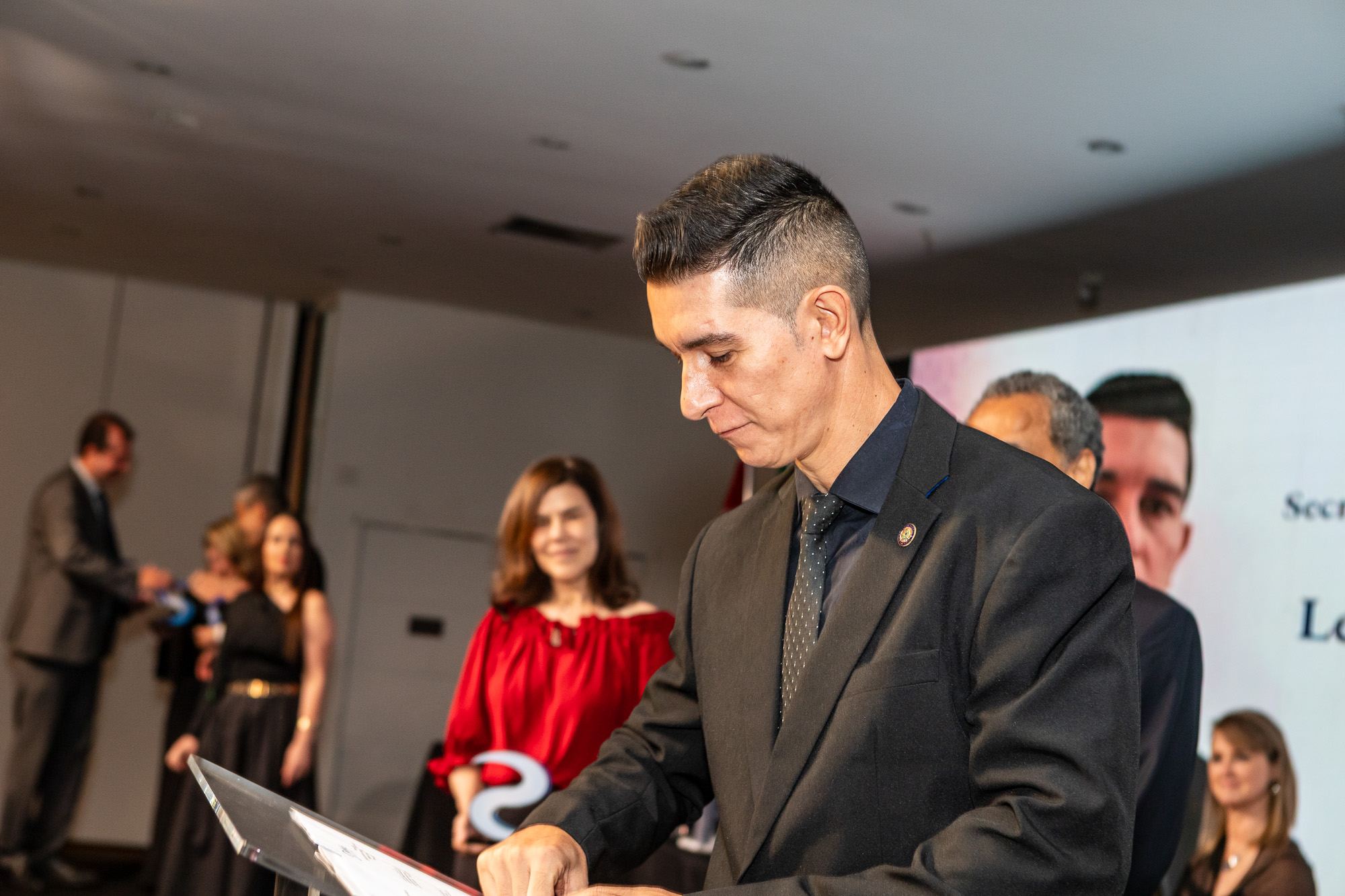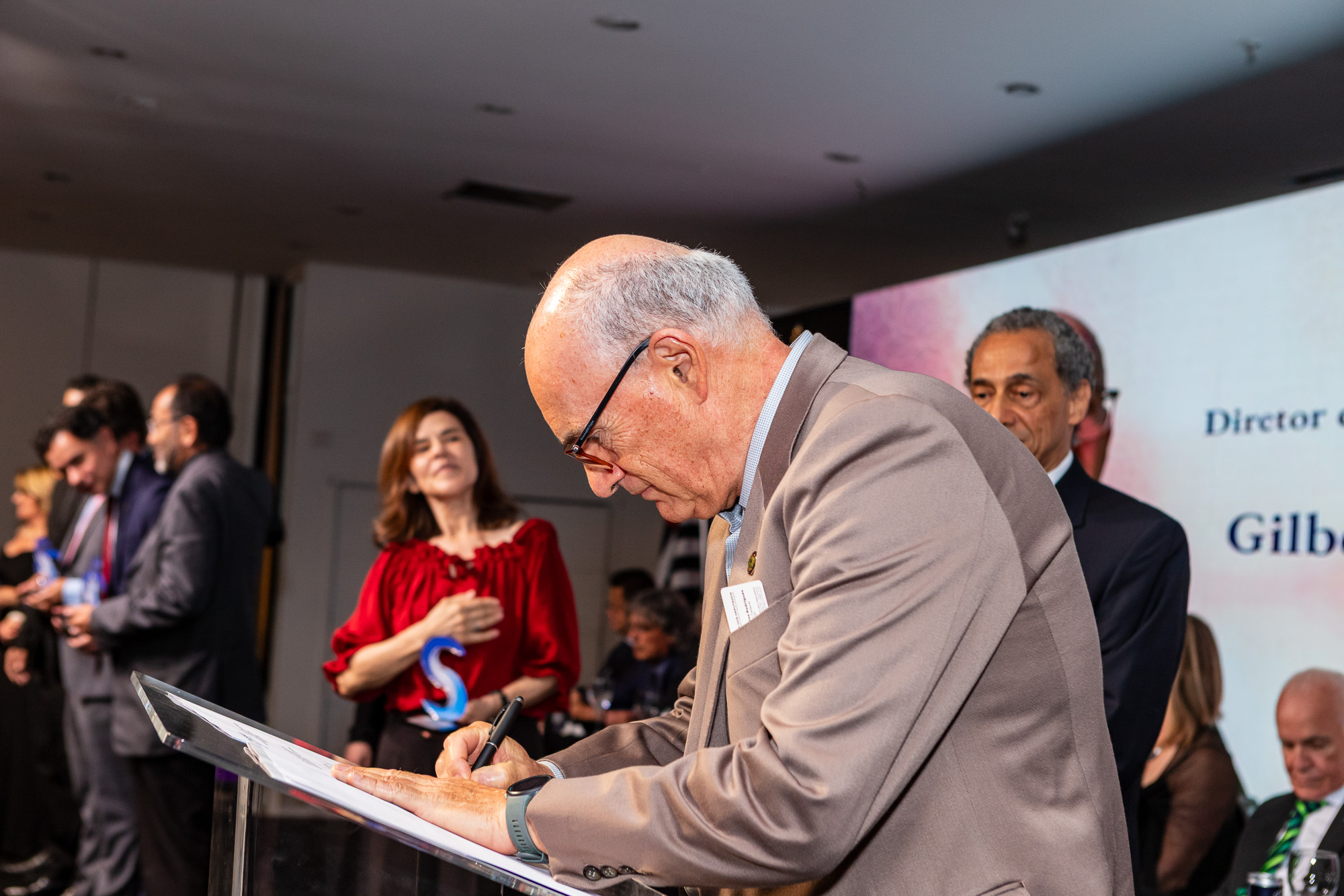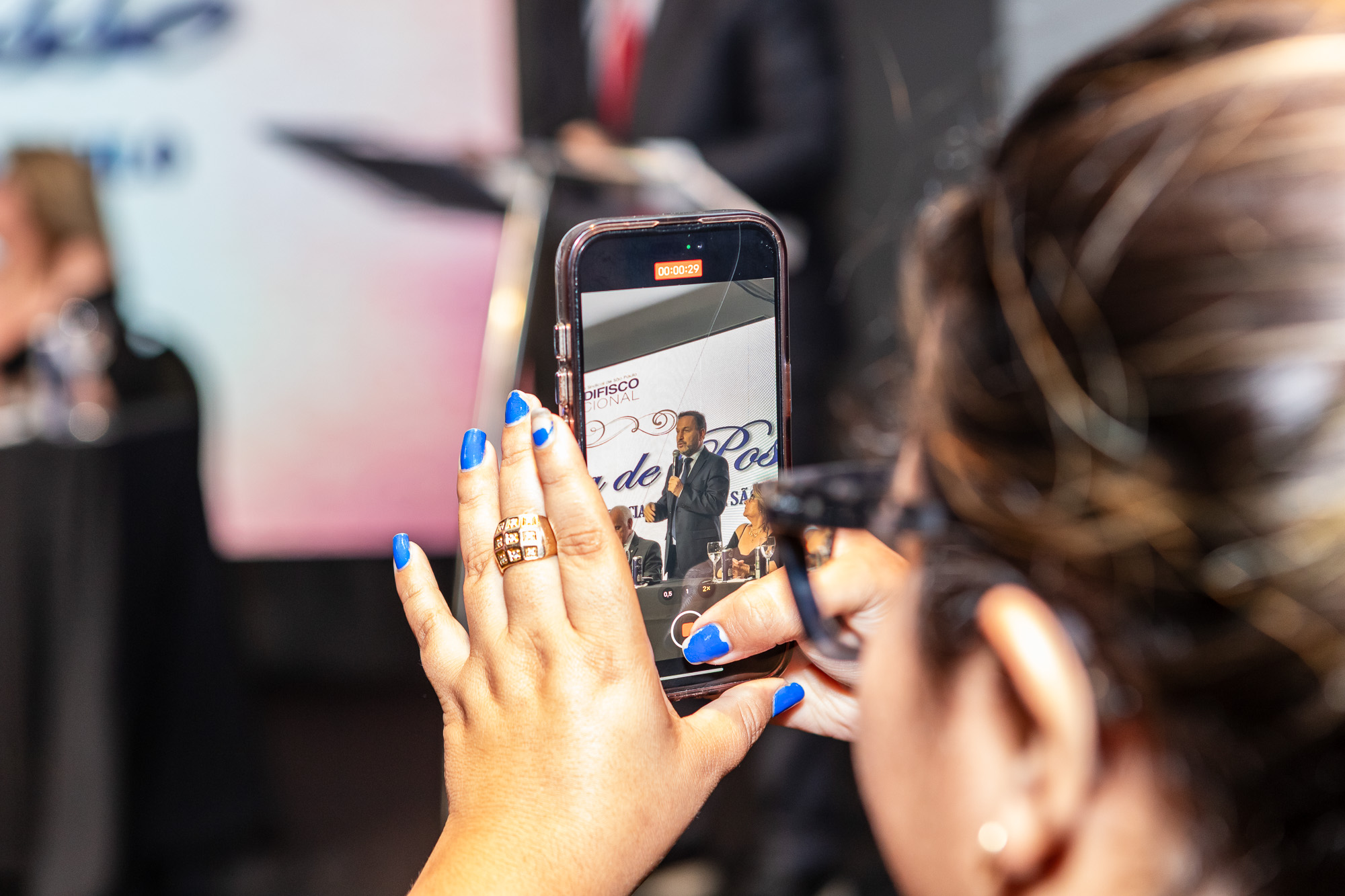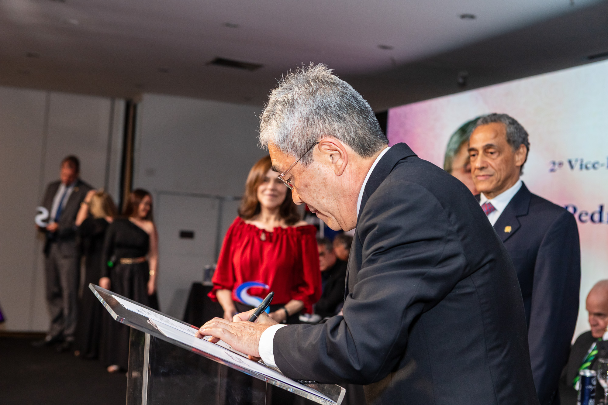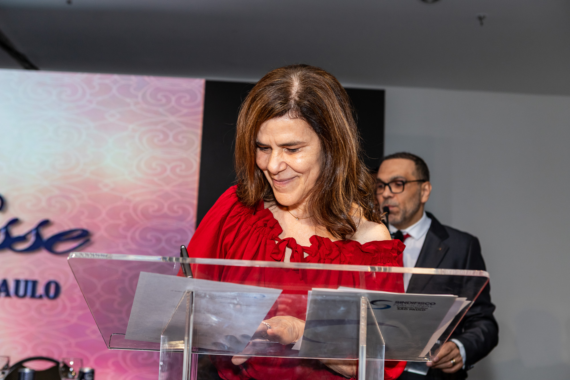 Para compor a mesa diretora, foram chamados ao palco o Presidente da DS/SP do Sindifisco Nacional, Auditor-Fiscal Gabriel Rissato Leite Ribeiro; o Presidente da Diretoria Executiva Nacional (DEN) do Sindifisco Nacional, Auditor-Fiscal Dão Real Pereira dos Santos; a Superintendente da 8ª Região Fiscal, Auditora-Fiscal Márcia Cecília Meng; e o Corregedor da Receita Federal, Auditor-Fiscal Guilherme Bibiani Neto.