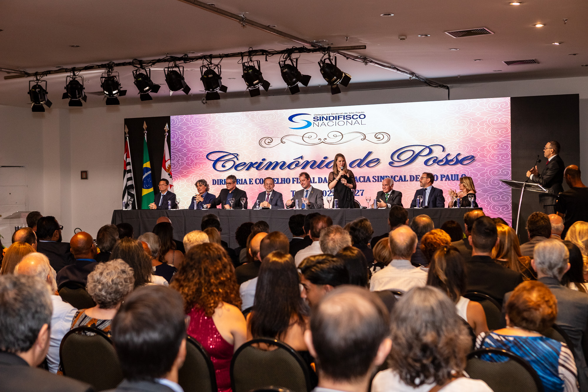 Cerca de 350 convidados, entre autoridades fiscais, parlamentares, autoridades públicas em geral, representantes de entidades de carreiras típicas de Estado e outros convidados, reuniram-se na sexta-feira (21/02), no Tivoli Mofarrej São Paulo Hotel, para celebrar a posse da nova Diretoria Executiva e do novo Conselho Fiscal da Delegacia Sindical de São Paulo (DS/SP) do Sindifisco Nacional para o triênio 2025-2027.