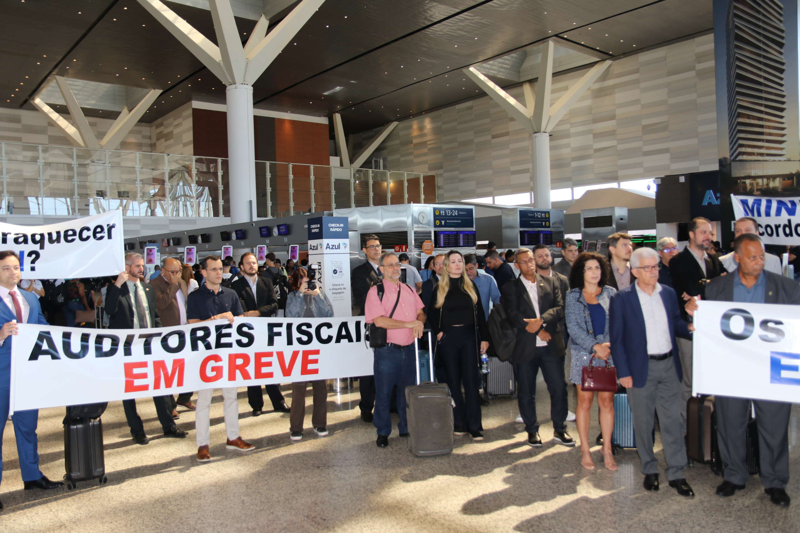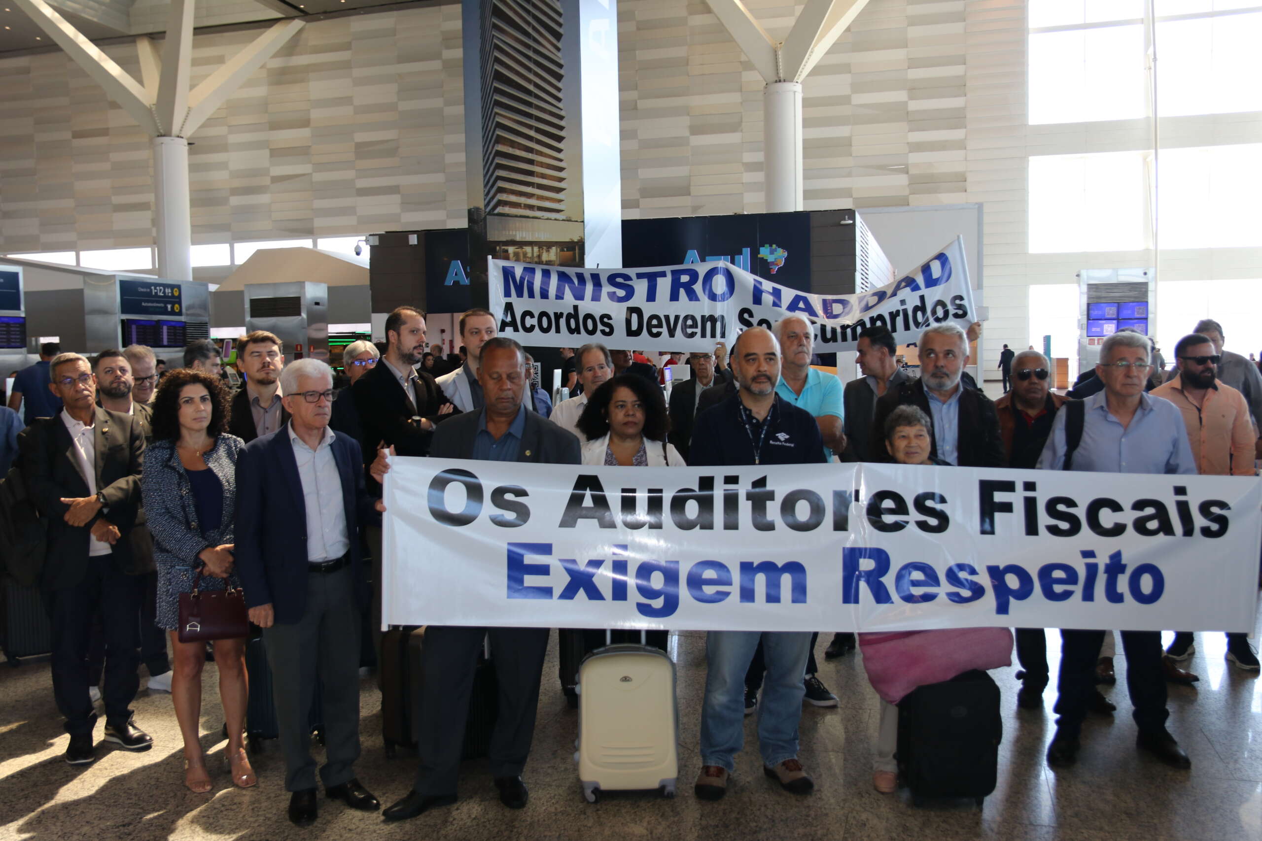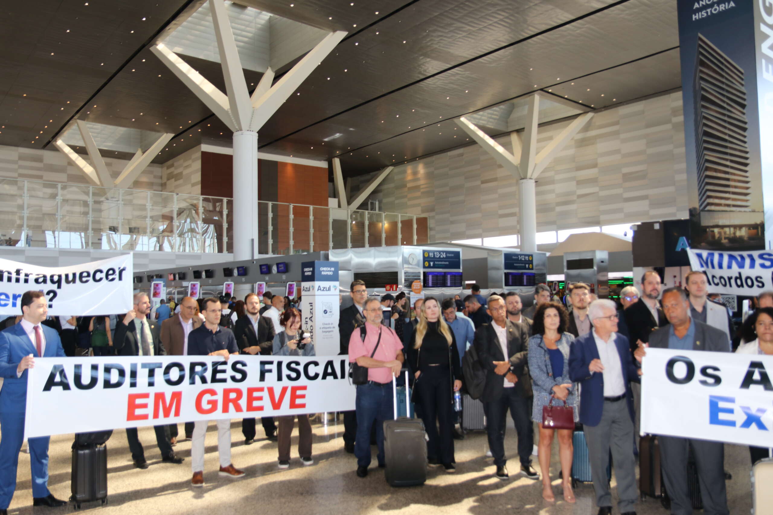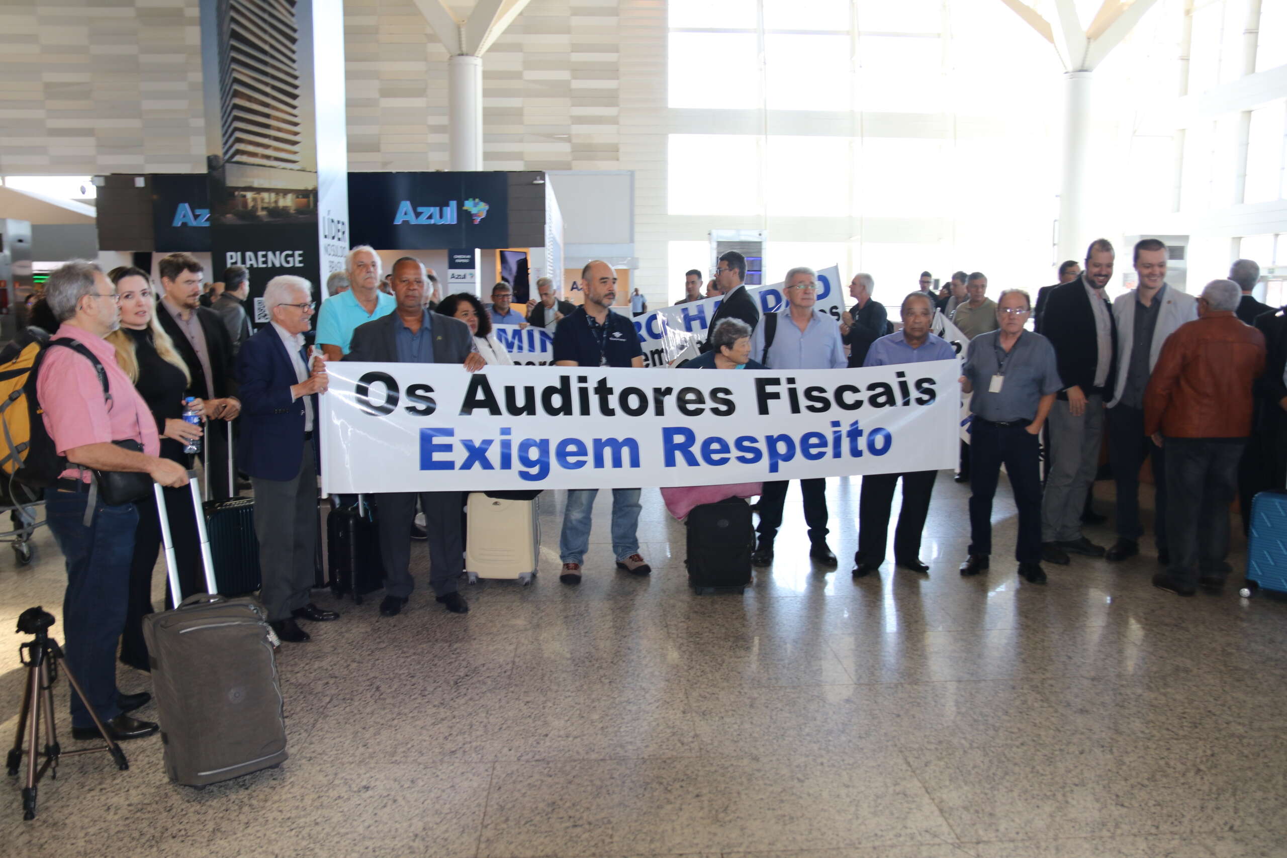 Na ocasião, em apoio aos Auditores-Fiscais aduaneiros que atuam na zona primária e estão sujeitos a maior pressão nos exercícios de suas atribuições, os Auditores-Fiscais se reuniram no saguão de embarque do Aeroporto com faixas e cartazes, mostrando à sociedade os principais motivos da greve – que já se aproxima do quinto mês.