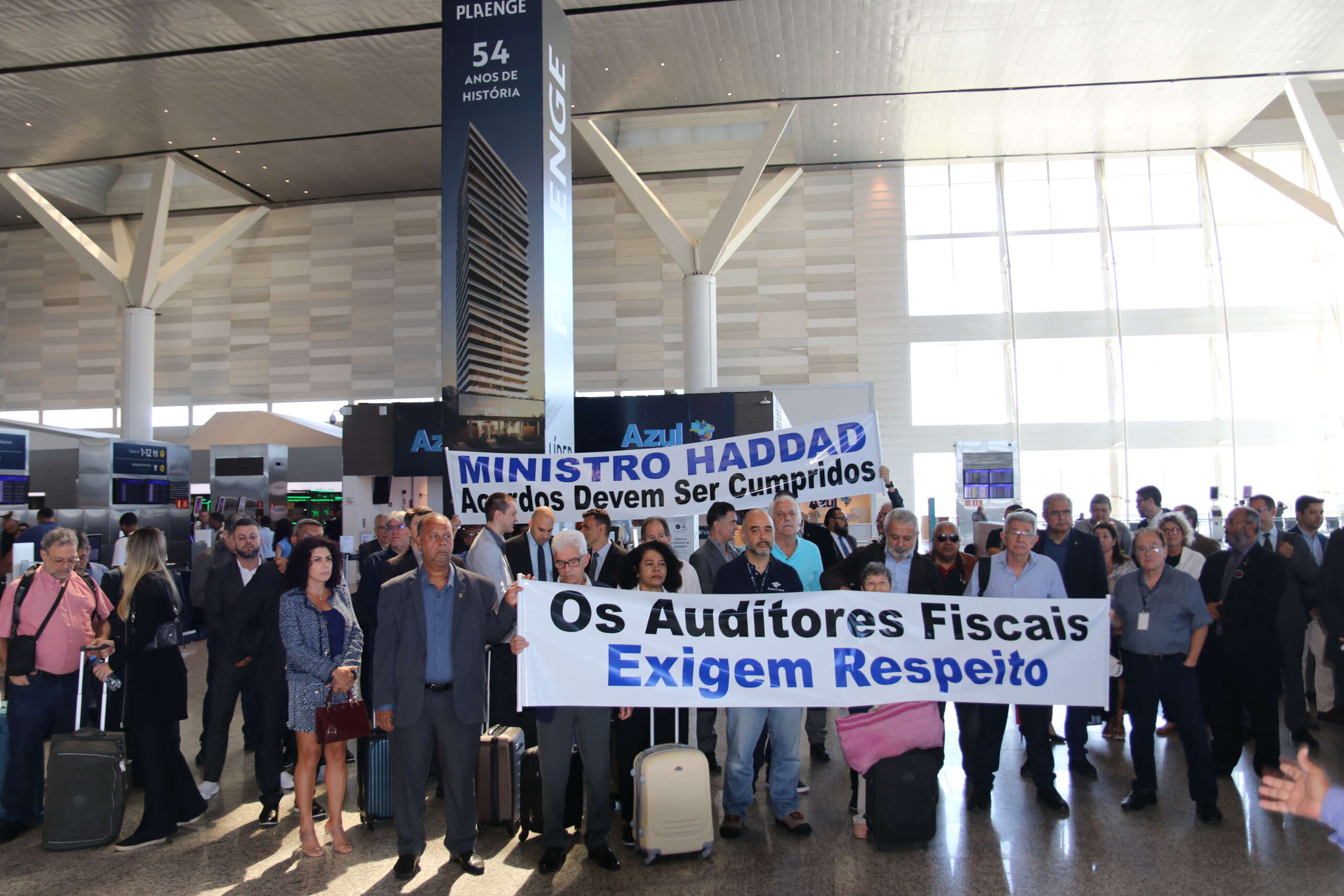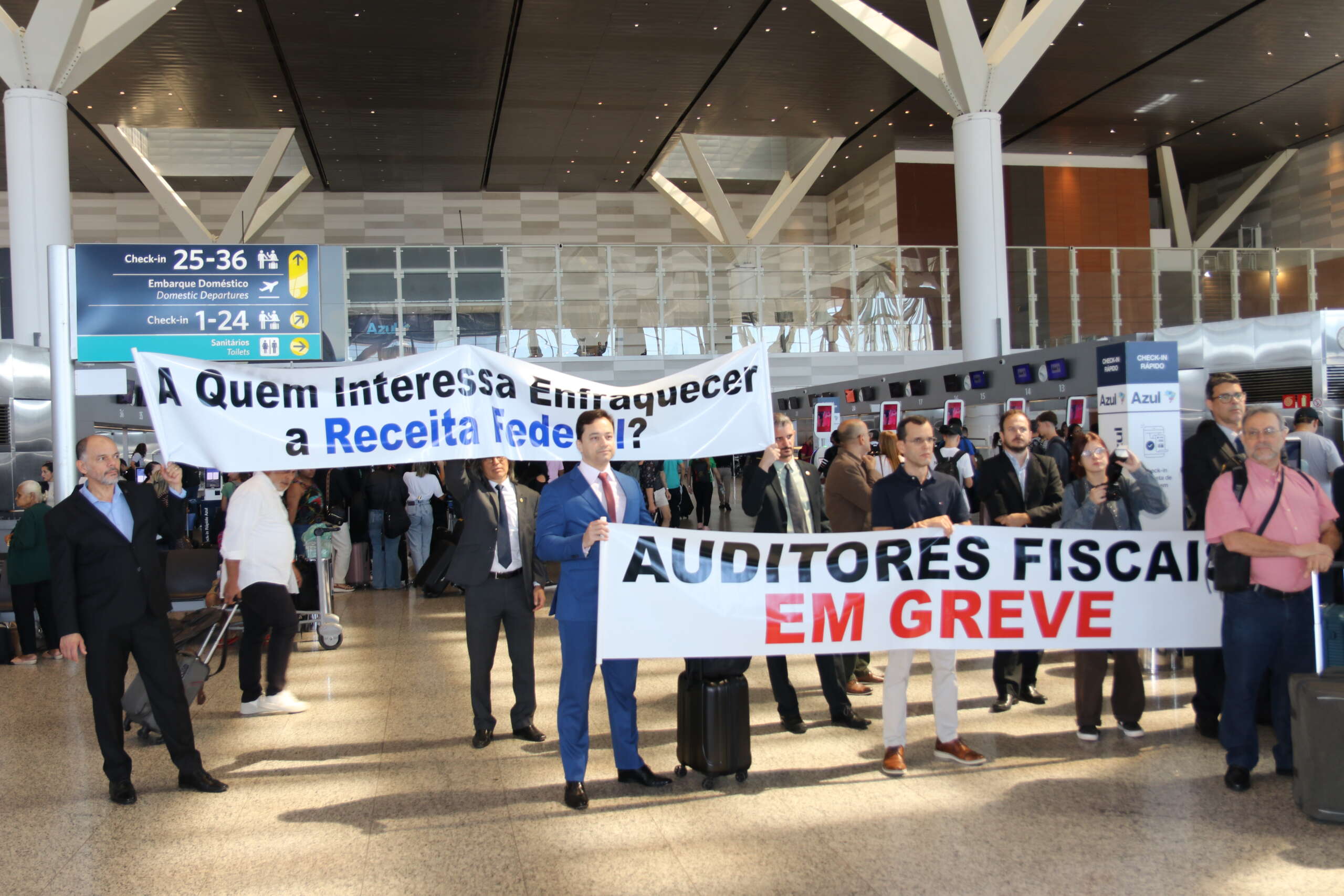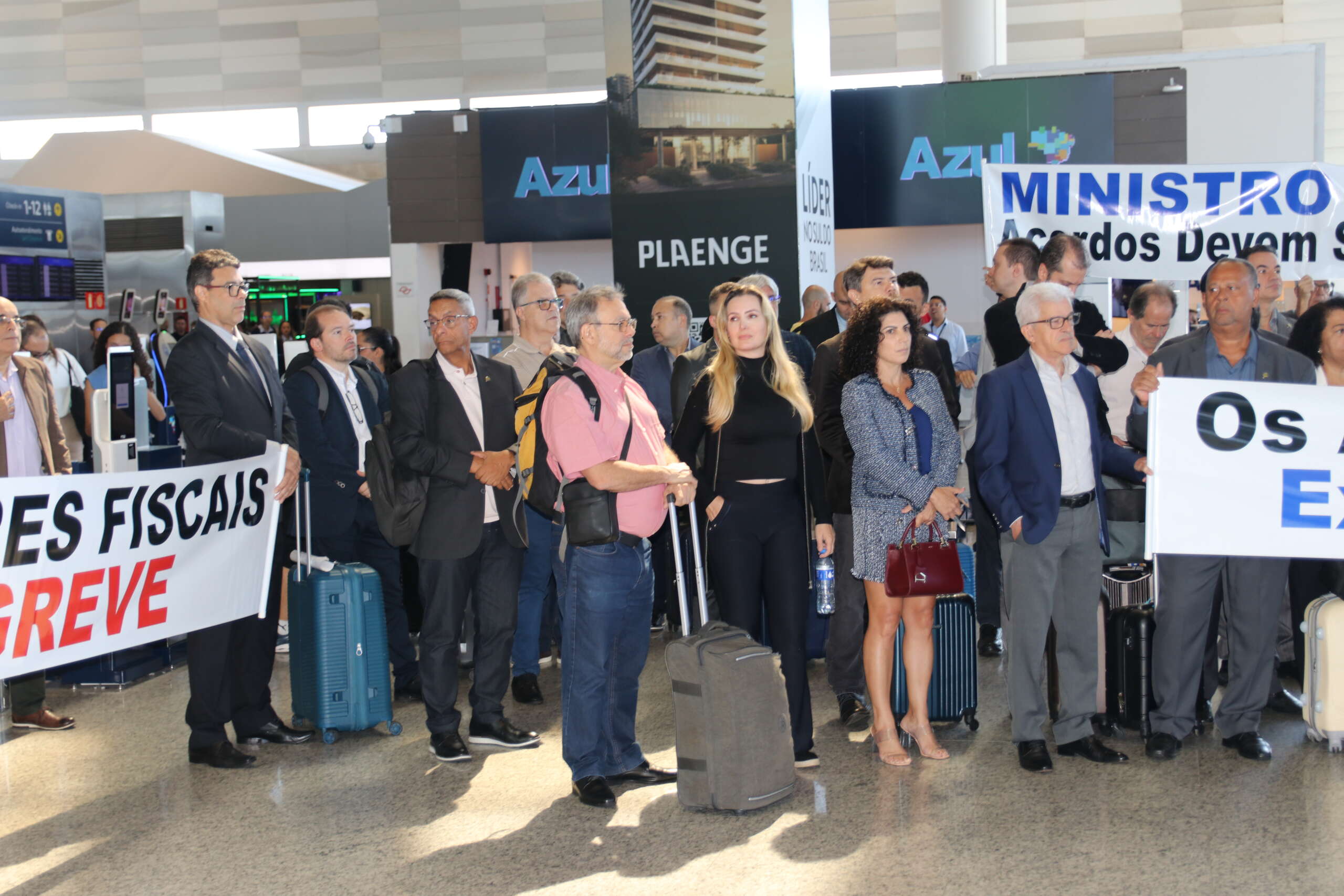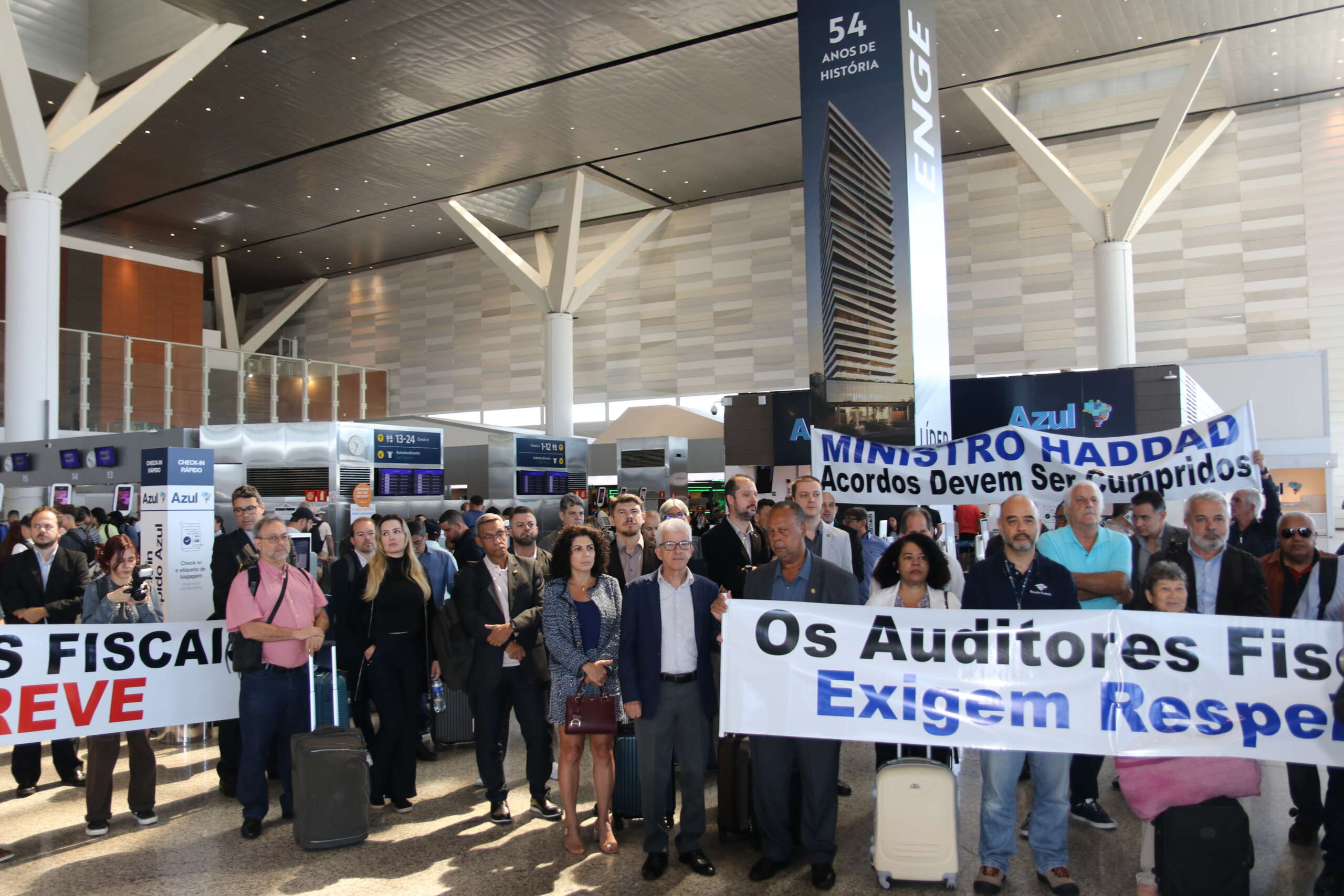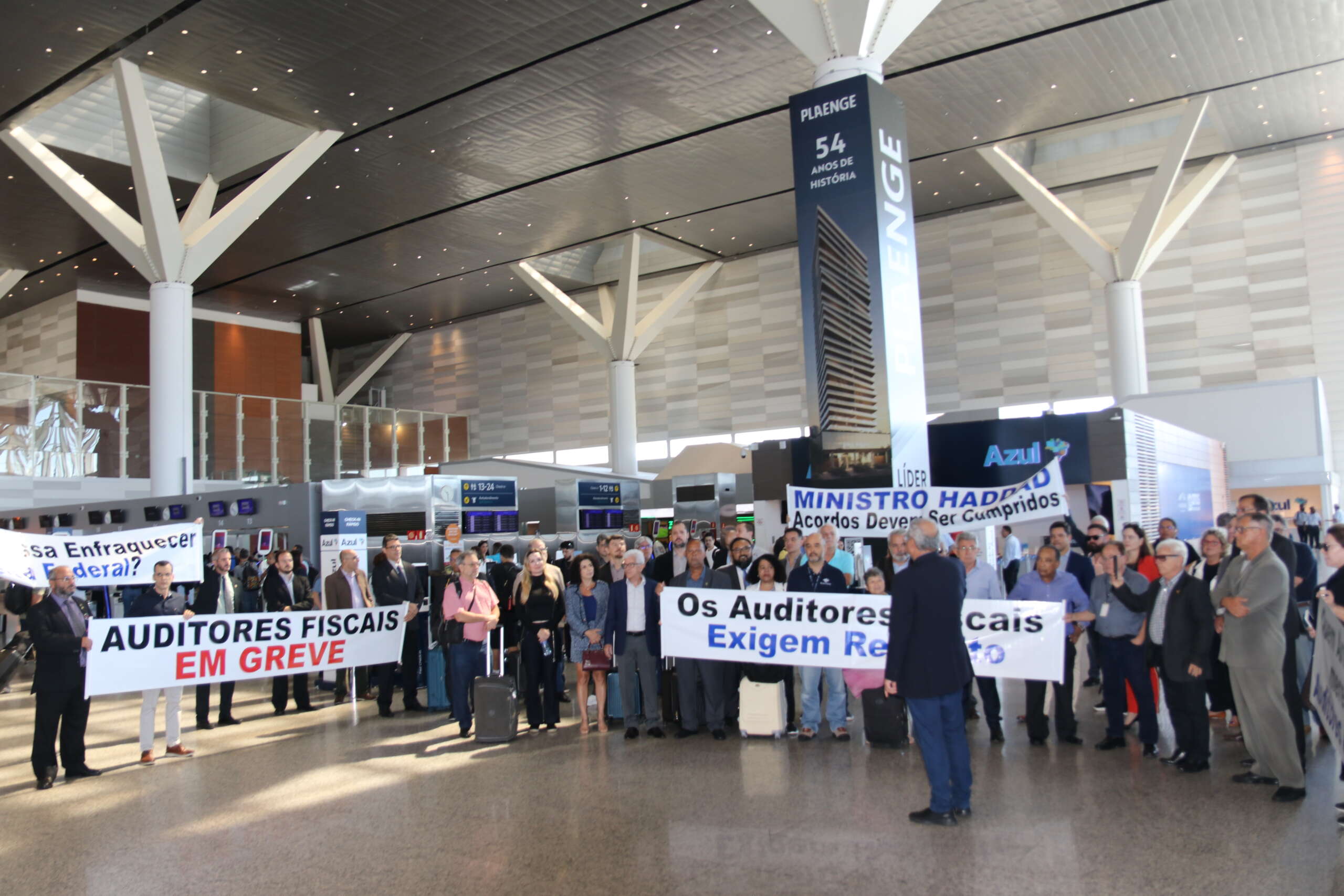 Na ocasião, em apoio aos Auditores-Fiscais aduaneiros que atuam na zona primária e estão sujeitos a maior pressão nos exercícios de suas atribuições, os Auditores-Fiscais se reuniram no saguão de embarque do Aeroporto com faixas e cartazes, mostrando à sociedade os principais motivos da greve – que já se aproxima do quinto mês.