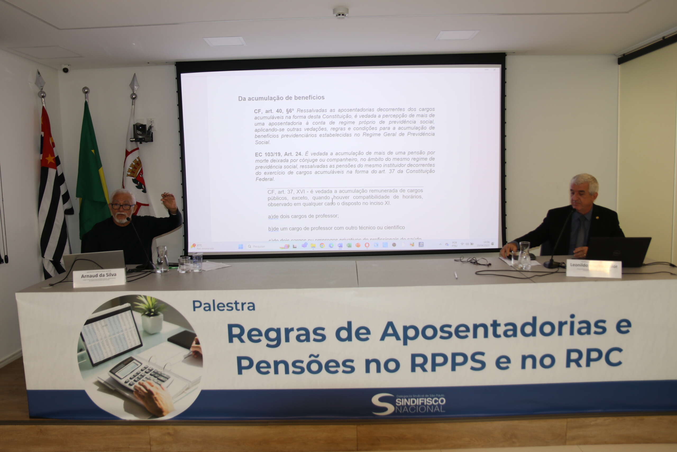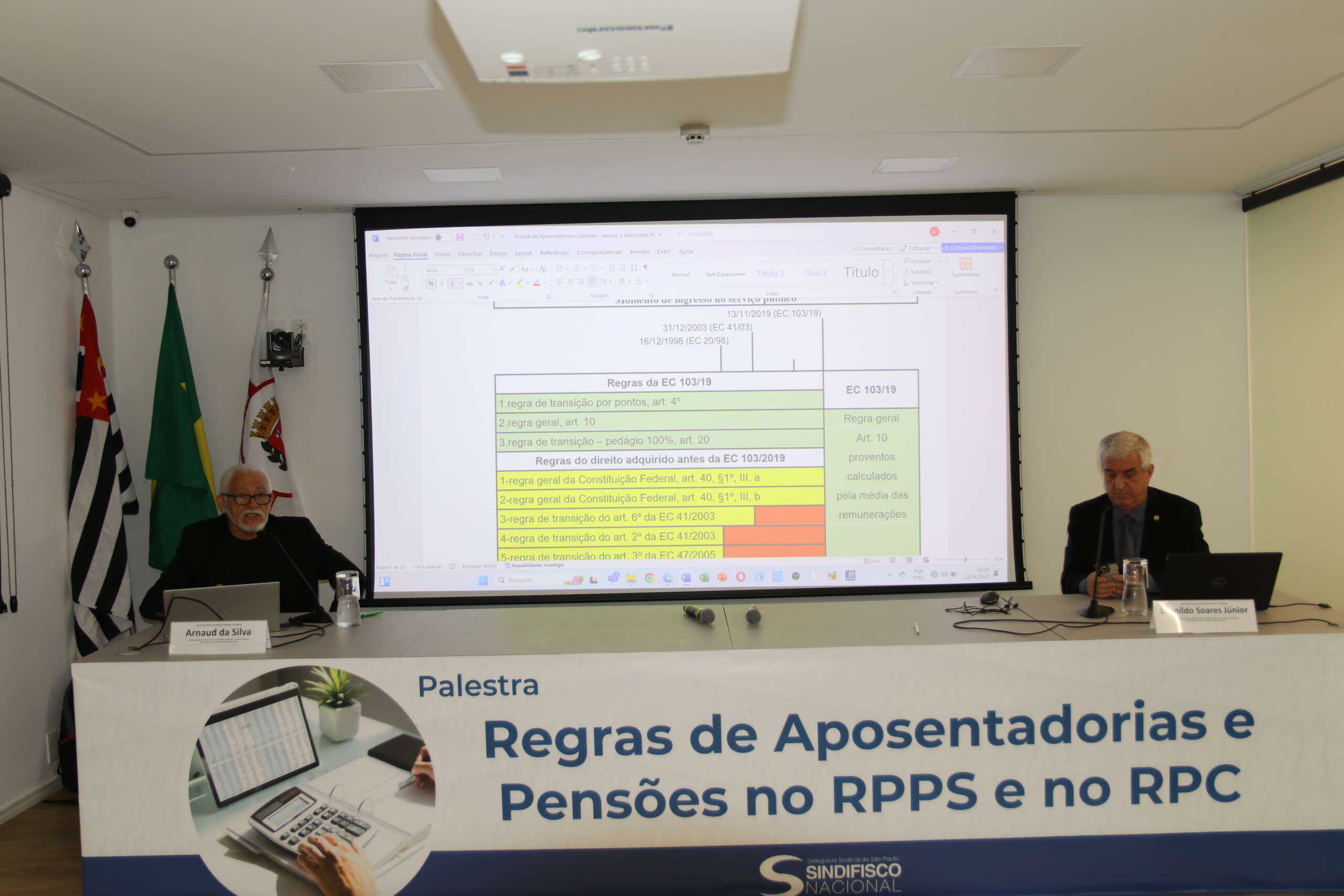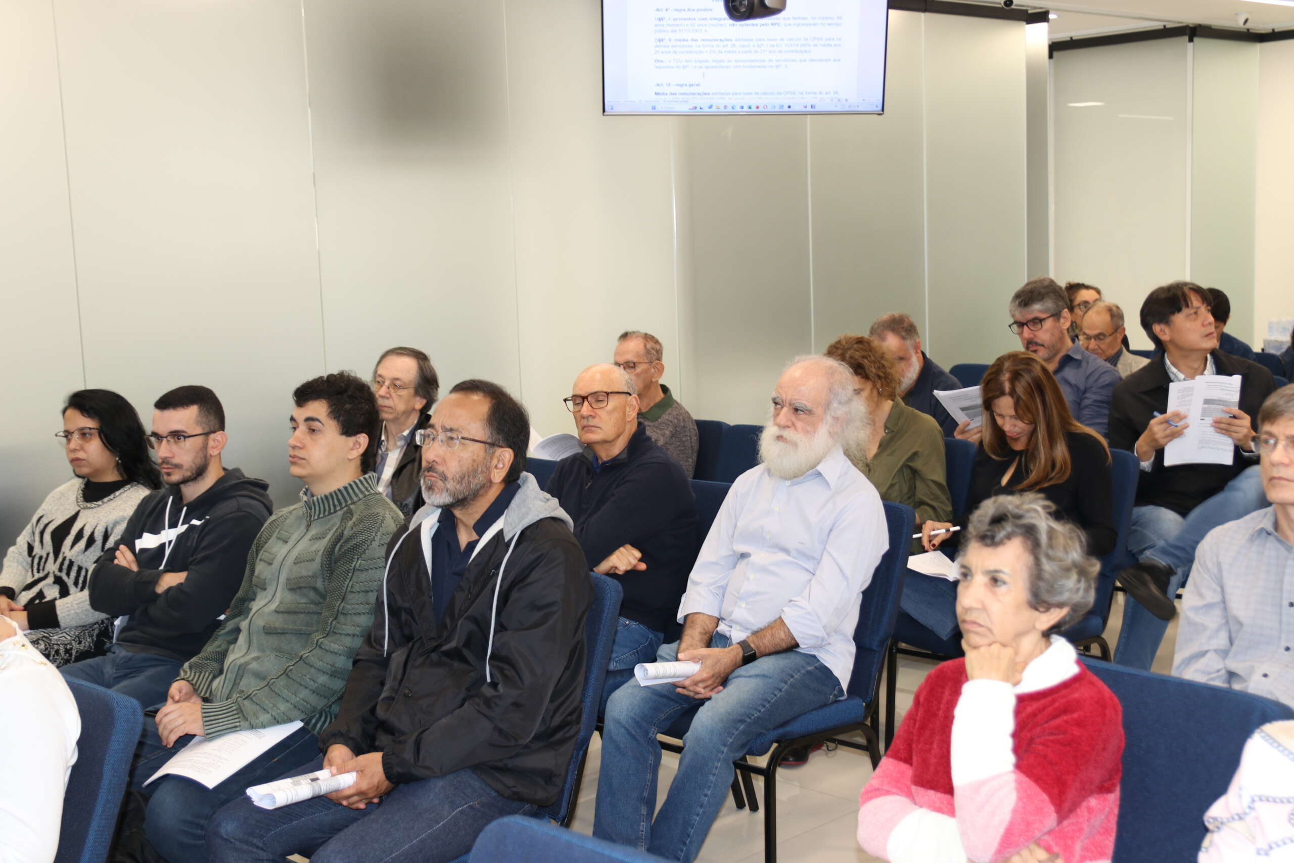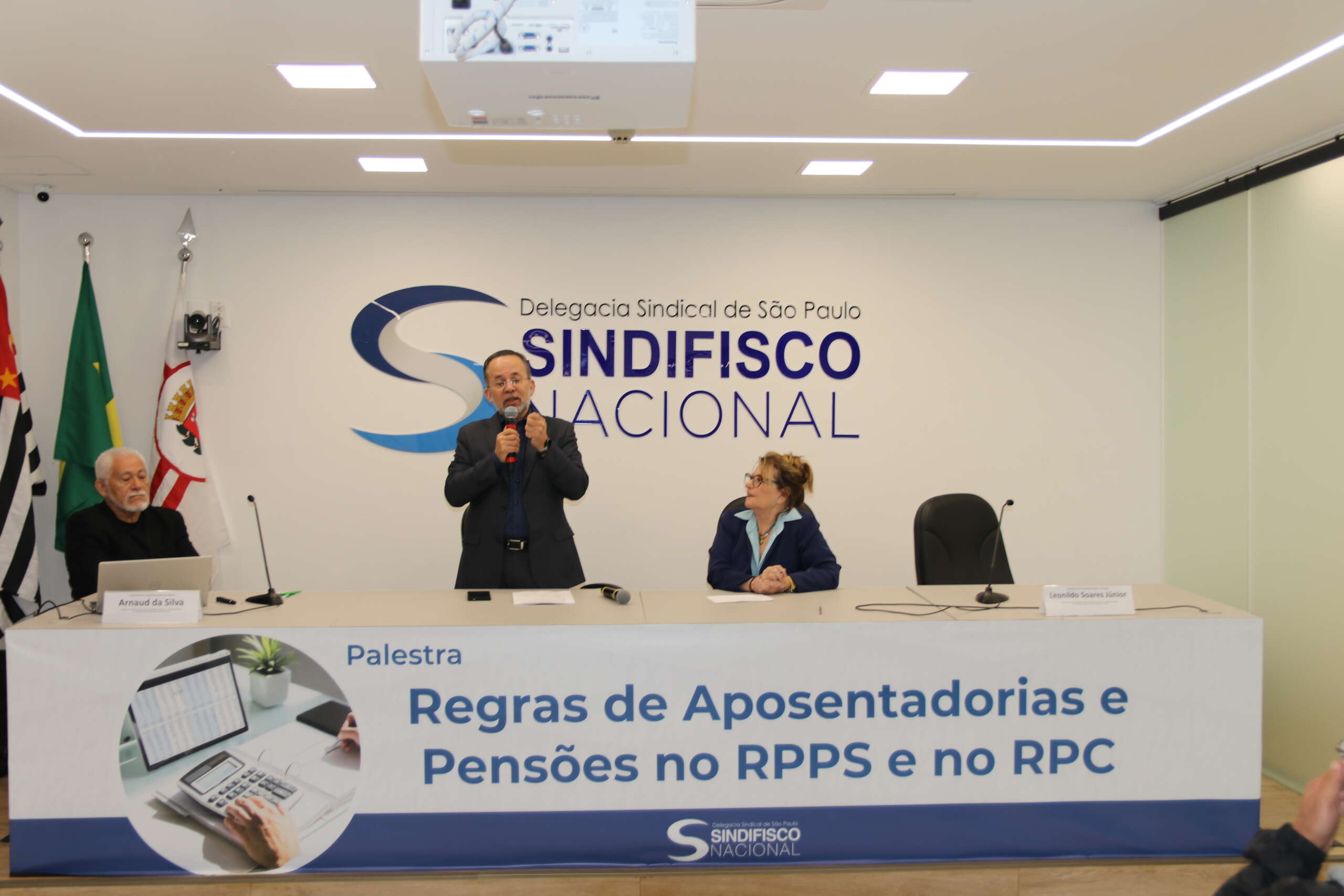 Na última quarta-feira (23), cerca de 50 Auditores-Fiscais ativos e aposentados acompanharam presencialmente a palestra: “Regras de Aposentadorias e Pensões no Regime Próprio de Previdência Social (RPPS) e no Regime de Previdência Complementar (RPC)” na sede da DS São Paulo.