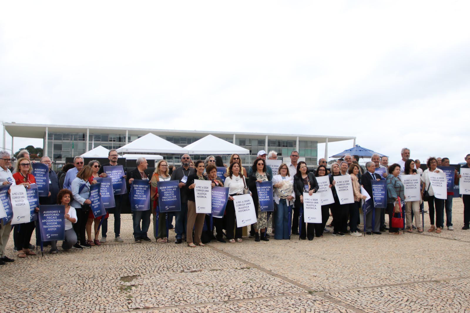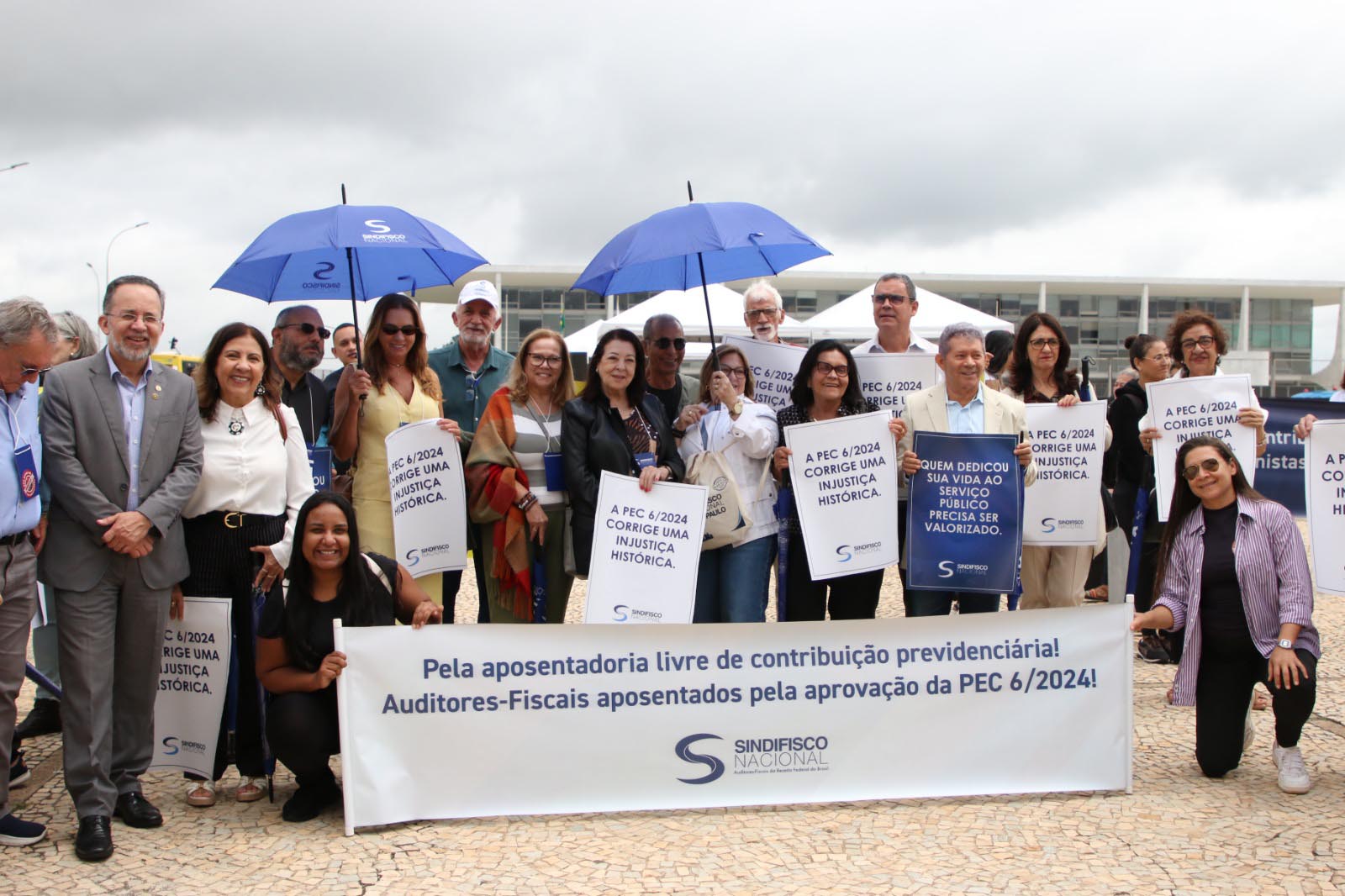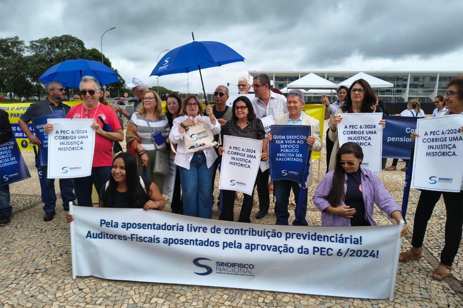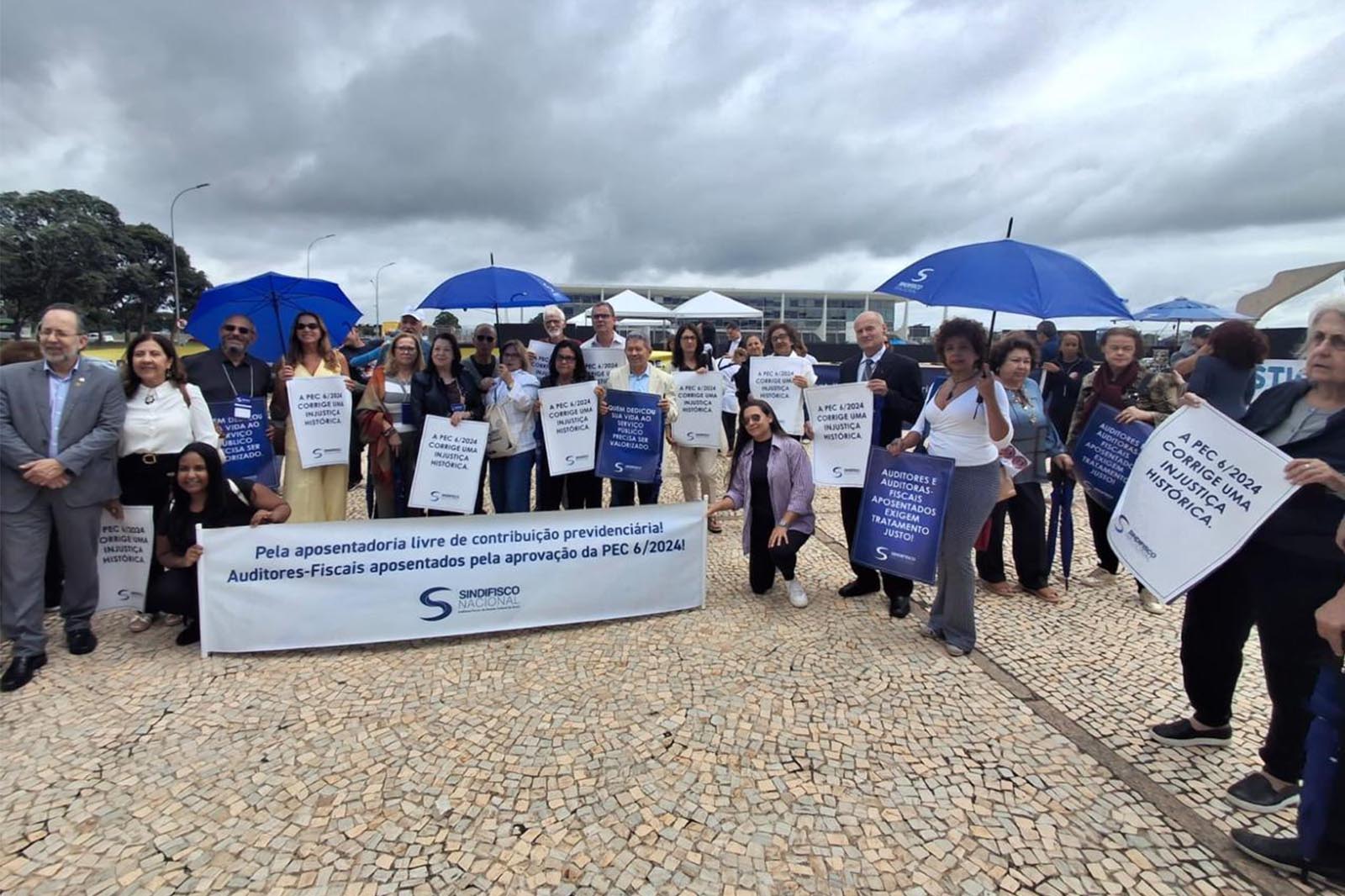 Durante o percurso, os Auditores exibiram faixas e bandeiras em defesa dos direitos da categoria. Além da cobrança pelo fim da contribuição previdenciária de aposentados e pensionistas, com o devido apensamento da PEC nº 06/2024 à PEC nº 555/2006, foi reivindicada a aprovação do Projeto de Lei nº 6.170/2025 – que regulamenta o acordo salarial firmado entre a categoria e o Governo Federal.
