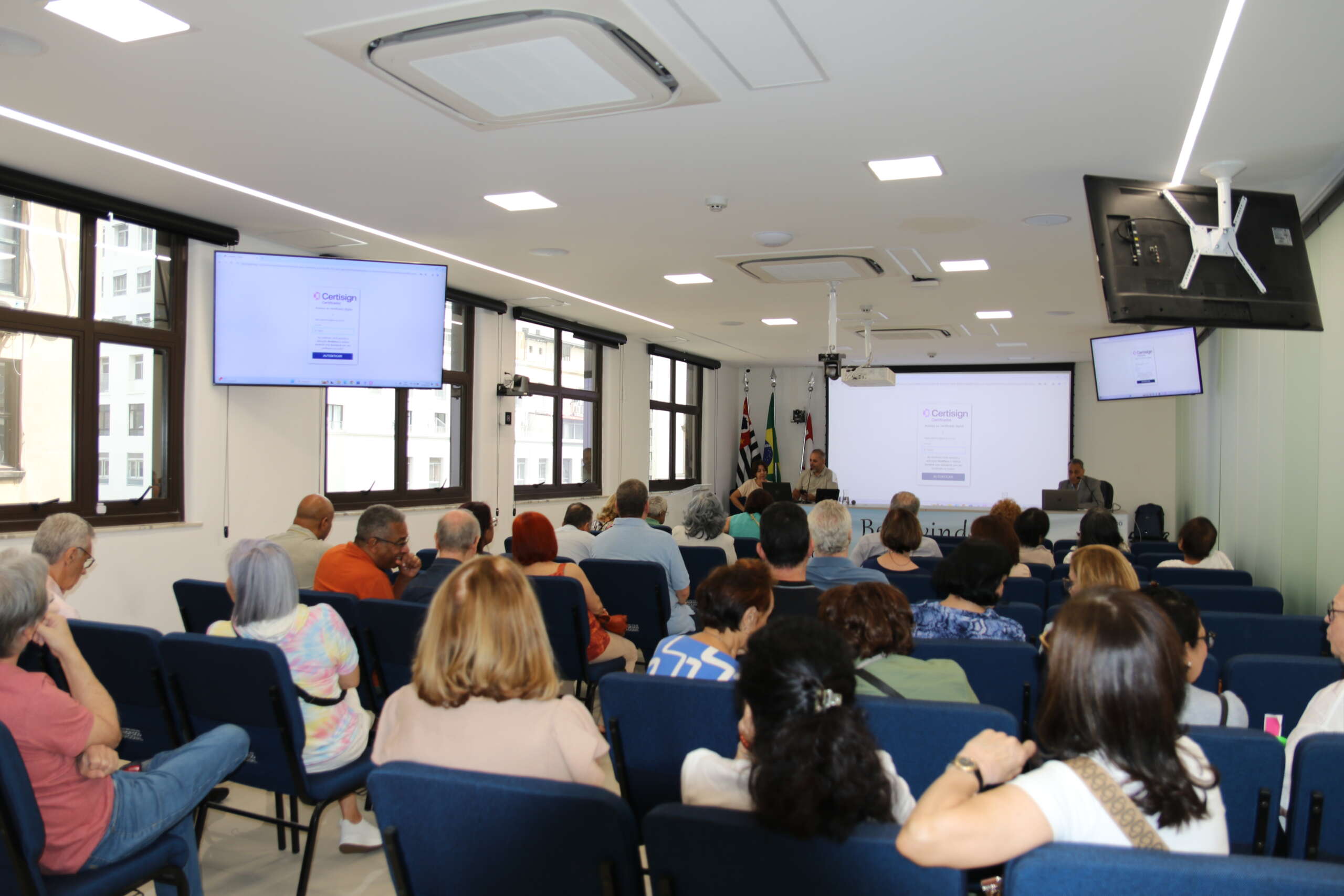 Os participantes assistiram a vídeos demonstrativos sobre o uso dos certificados Vidas e Certisign, além de visualizar na prática uma simulação da votação pelo Portal de Serviços da DEN com o certificado da Certisign.