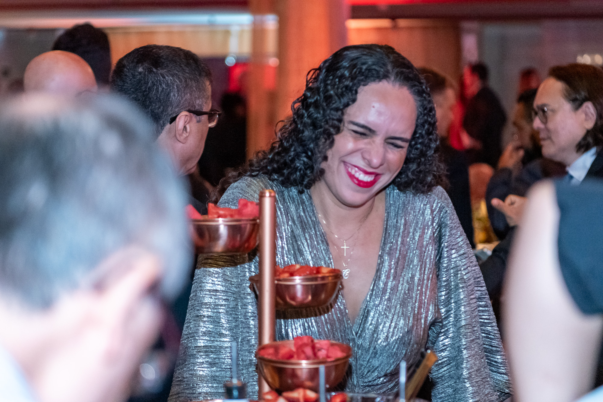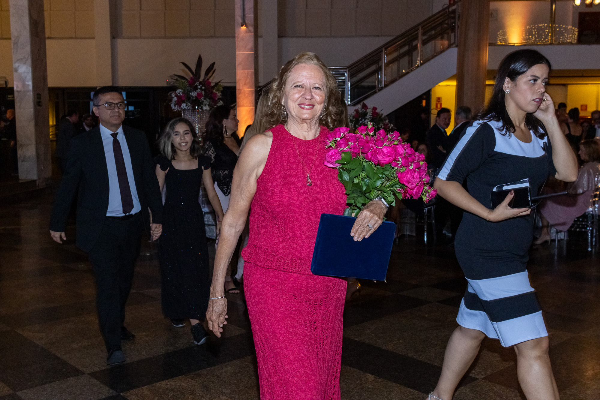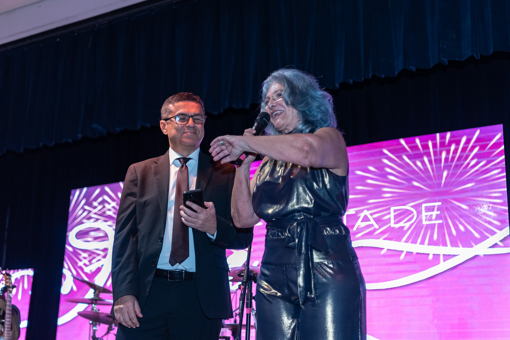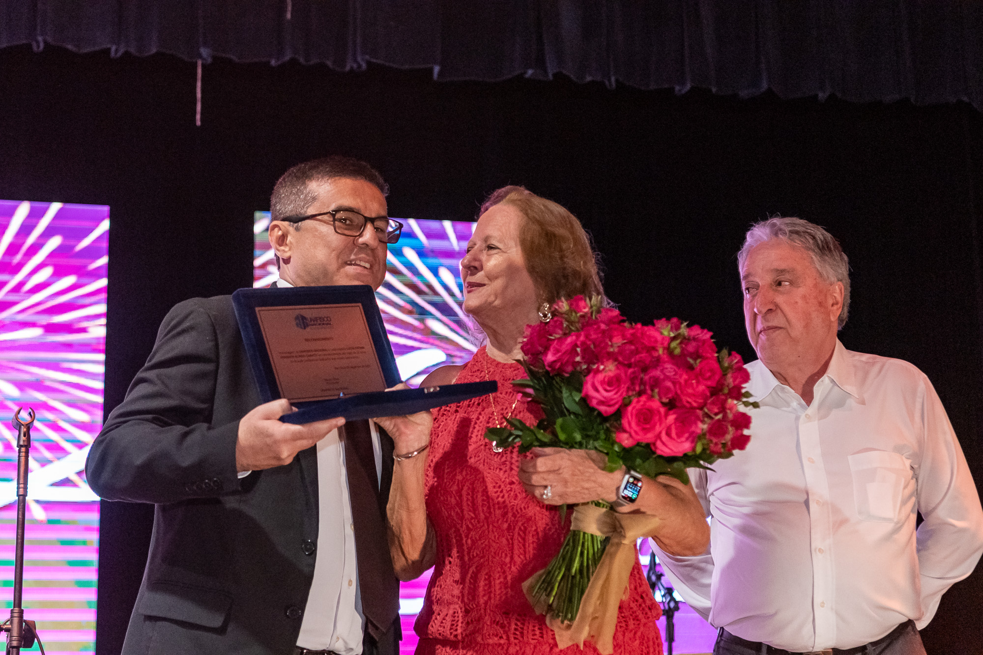 Um dos momentos mais emocionantes da noite foi a homenagem à Lucia Caratti, que após 32 anos de dedicação à Unafisco, se despede da instituição. A colaboradora recebeu flores e uma placa em reconhecimento ao seu trabalho à frente do departamento de convênios.